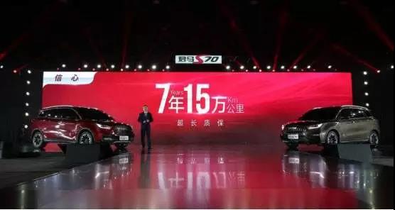 按照咱们国家的汽车三包政策,强制规定上市销售的新车,厂方要提供3年或6万公里的整车质保。国内车企也普遍把车型质保门槛设置为3年或6万公里左右,即使一些质量较好的品牌,为了给消费者质量上的信心,也只能做到5年或10万公里。但是谁都没想到,君马S70上市,伸手就打出了7年15万公里的超值质保牌,一下就让中国车市“地震”了。